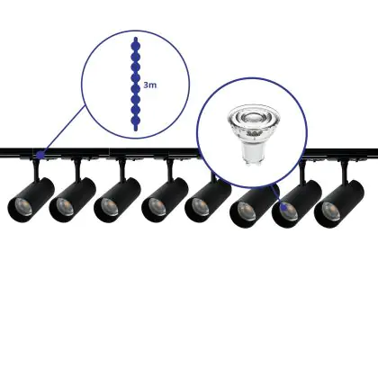 | Herstellername | Complete Straight 3-meter 1-Phase Track Set Black incl. 8x Spot fixture + GU10 2700K 3W Dim – 2x 1.5 | |