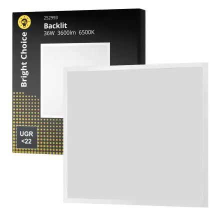 Das Bright Choice LED Panel Backlit 36W 3600lm - 865 Tageslichtweiß | 60x60cm - UGR ist ein modernes LED-Panel, welches Licht in der Farbtemperatur ausstrahlt und mit einer langen Lebensdauer punktet. Mit dem hochwertigen Panel, welches ideal als Allgemeinbeleuchtung verwendet werden kann, sparen Sie nicht nur Energiekosten, sondern steigen auch auf eine langlebige und flackerfreie Lichtlösung um.