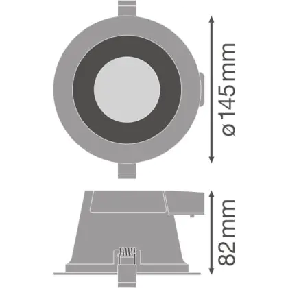 Die Downlight ist robust gebaut und daher mit der Schutzklasse IP54 ausgezeichnet. Damit gilt sie als geschützt gegen feste Fremdkörper mit ≥ 1,0 mm Durchmesser und als dicht bei allseitigem Spritzwasser.