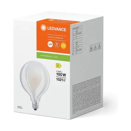 Die Mehrfachpackung 6x Ledvance Classic LED E27 Globe Fadenlampe Matt 11W 1521lm - 827 Extra Warmweiß | Ersatz Für 100W ist eine effiziente E27 LED-Lampe mit Retrodesign und der perfekte Ersatz für Ihre konventionellen 100W Lampen mit E27. Zudem strahlt sie Licht in der Farbtemperatur aus und punktet durch eine lange Lebensdauer.