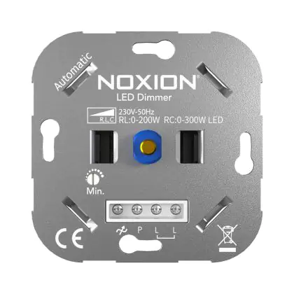 Die Nennleistung des Noxion LED-Dimmer RLC 0-300W 220-240V liegt in einem Bereich von 0-300 Watt. Damit deckt der Dimmer für LED einen größeren Wattbereich ab, als vergleichbare Produkte anderer Hersteller.