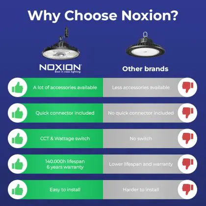 Wir von BeleuchtungDirekt haben mit der LED-Hallenleuchte von Noxion gute Erfahrungen gemacht. Daher bieten wir Ihnen für dieses Produkt eine Garantie von 6 Jahre an.