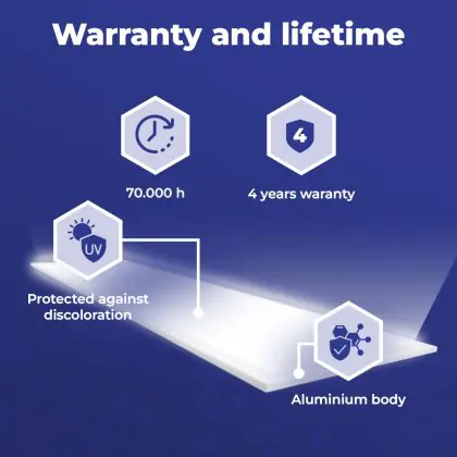Wir von BeleuchtungDirekt haben mit dem LED-Panel von Noxion gute Erfahrungen gemacht. Daher bieten wir Ihnen für dieses Produkt eine Garantie von 4 Jahre an.