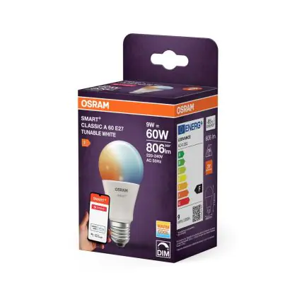 Die Osram Smart+ Classic LED E27 Birne Matt 9W 806lm - 827-865 Abstimmbares Weiß | Zigbee Dimmbar - Ersatz Für 60W ist eine effiziente E27 LED-Lampe und der perfekte Ersatz für Ihre konventionellen 60W Lampen mit E27-Sockel. Zudem strahlt sie Licht in der Farbtemperatur aus und punktet durch eine lange Lebensdauer.