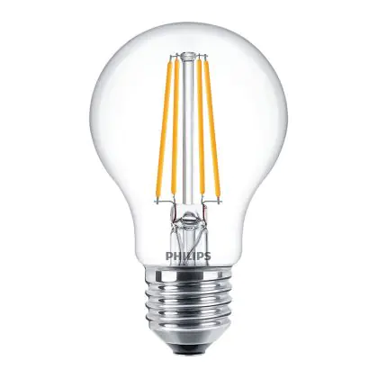 Die Philips Corepro LED Glühbirne E27 Birne Klar 7W 850lm - 840 Kaltweiß | Ersatz für 60W ist eine effiziente E27 LED-Lampe und der perfekte Ersatz für Ihre konventionellen 60W Lampen mit E27-Sockel. Zudem strahlt sie Licht in der Farbtemperatur 4000K - Kaltweiß aus und punktet durch eine lange Lebensdauer.