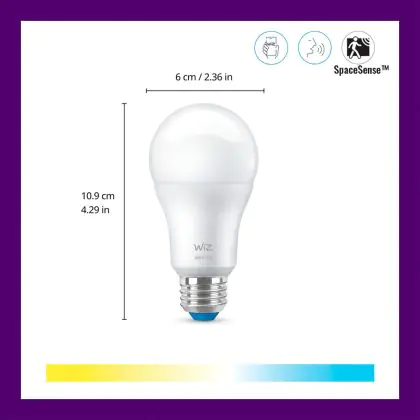 Die WiZ Smart LED E27 Birne Matt 8W 806lm | Höchste Farbwiedergabe - Dimmbar - Ersatz Für 60W ist eine effiziente E27 LED-Lampe und der perfekte Ersatz für Ihre konventionellen 60W Lampen mit E27-Sockel. Zudem strahlt sie Licht in der Farbtemperatur aus und punktet durch eine lange Lebensdauer.