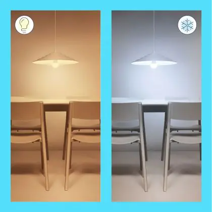 Die E27 LED-Lampe von WiZ kann mit der Farbtemperatur sowohl als Akzent- als auch als Allgemeinbeleuchtung verwendet werden. Als Faustregel gilt: Je niedriger der Kelvinwert, desto gemütlicher wirkt das Licht.